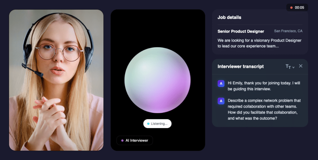 Ensures interview integrity with 12+ fraud-detection systems, including ID.me and CLEAR.